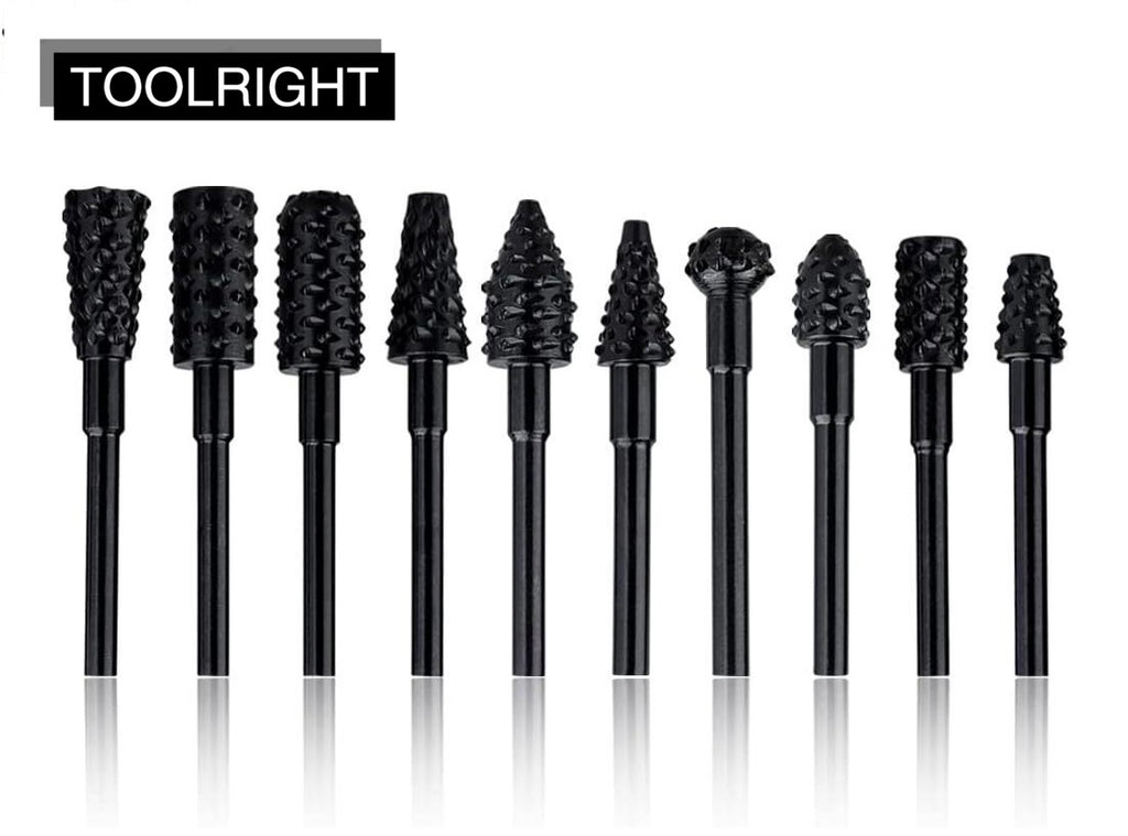 10pcs Woodworking Rasp File Drill Bits – 1/4" Shank Rotary Burr Set for Carving, Grinding & Polishing, High-Carbon Steel