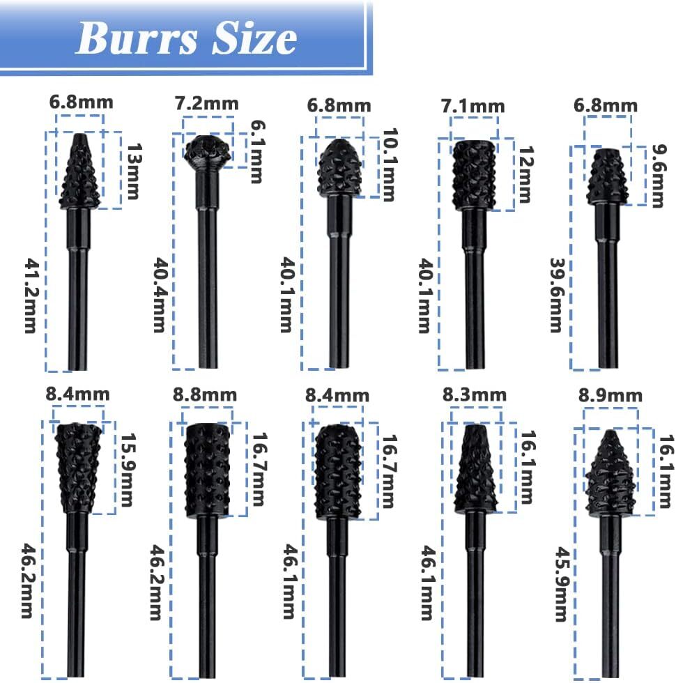 Upgrade your woodworking toolkit with this 10pcs Woodworking Rasp File Drill Bits Set. Made from high-carbon steel that is tempered and hardened for long-lasting durability, these rotary burrs are perfect for carving, grinding, shaping, and polishing wood, plastics, and rubber surfaces. Lightweight, versatile, and easy to use, this set is ideal for professional carpenters, woodworking enthusiasts, and DIY projects.