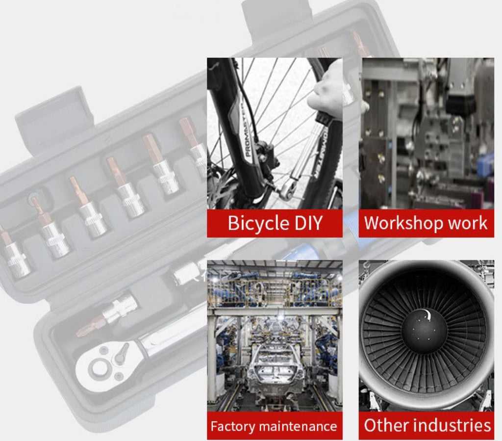 15Pcs 1/4" Torque Wrench Set (2–25Nm) – Bicycle Torque Tool & Screwdriver Kit