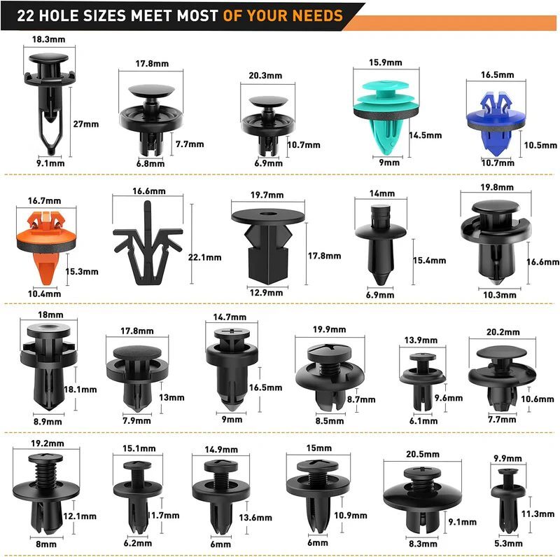 - Complete 635-Piece Set – Includes 26 types of universal car trim clips and fasteners for bumpers, doors, fenders, radiators, and interior panels.