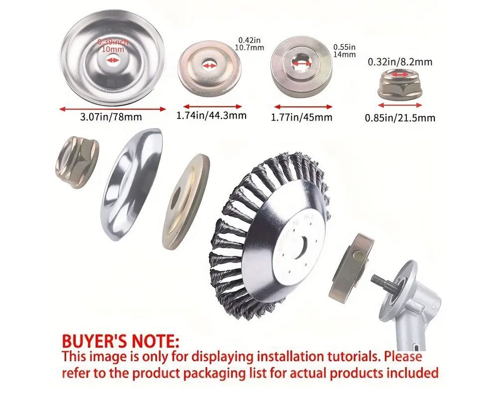 Upgrade your garden tools with this 8-inch knotted steel wire trimmer head, perfect for most straight-shaft brush cutters and weed trimmers (25.4mm / 1" bore). Made from high-quality carbon steel wire, this durable weed brush head offers excellent strength, long life, and sharp cutting performance.