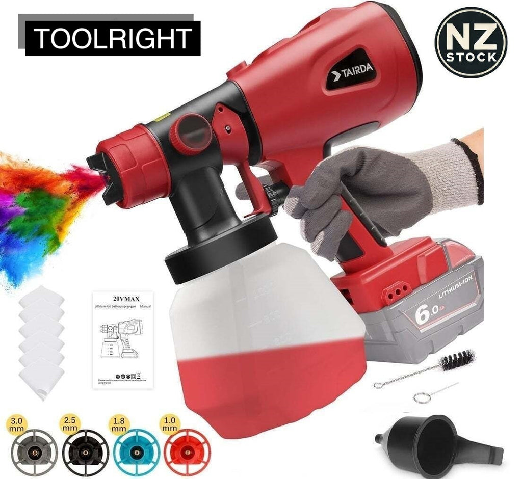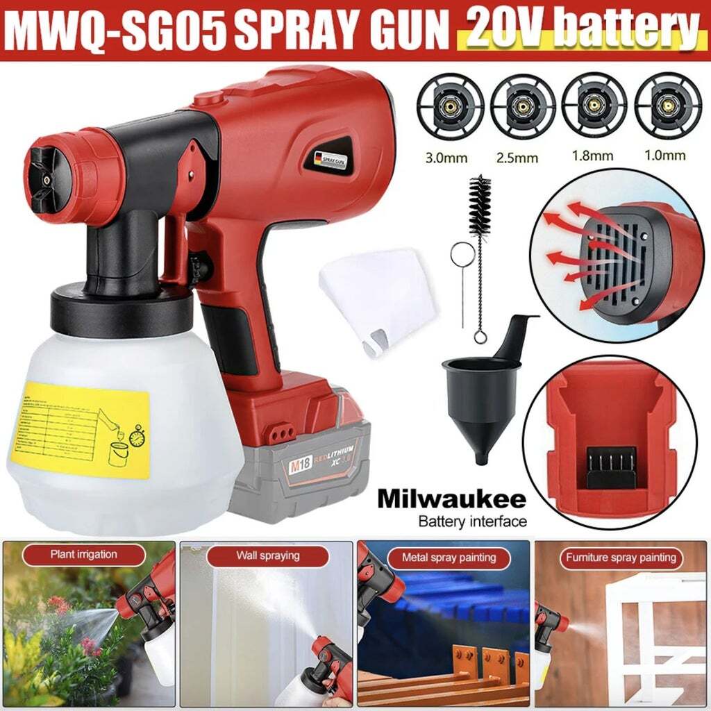 Cordless Paint Sprayer for Milwaukee 18V XC Lithium Batteries | Handheld HVLP Electric Paint Gun with 4 Nozzles & 1000mL Container | Portable Spray Gun for DIY & Home Projects (Battery Not Included)