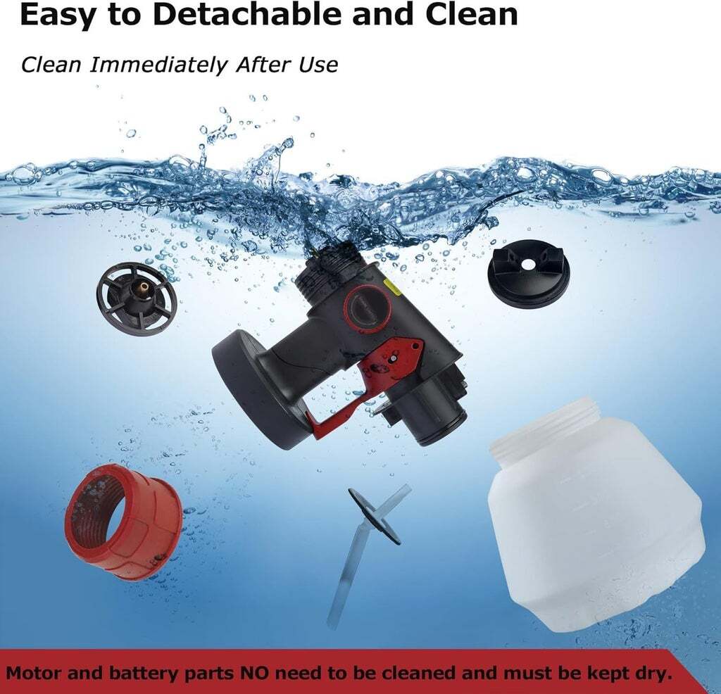 Always clean the paint sprayer after use to prevent clogging. After cleaning, fill the sprayer with water and spray for about 1 minute to flush out any residue. Proper cleaning and maintenance will extend the machine’s lifespan.