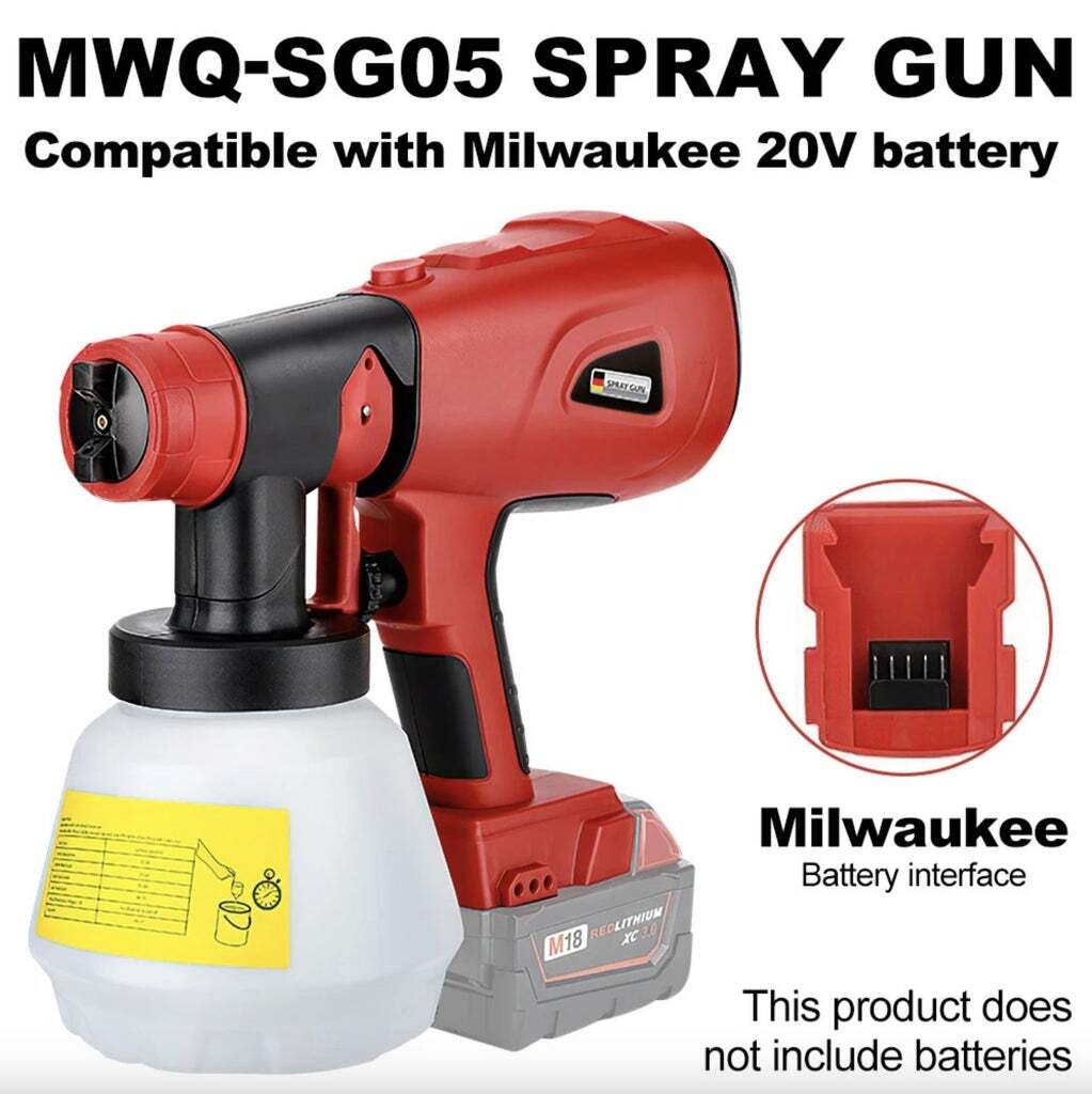 Get the freedom to paint anywhere with this Cordless HVLP Paint Sprayer compatible with Milwaukee 18V–20V Lithium-Ion Batteries. Designed for convenience and versatility, this handheld spray gun delivers smooth, even coverage on a wide range of surfaces—perfect for both DIY enthusiasts and professionals.