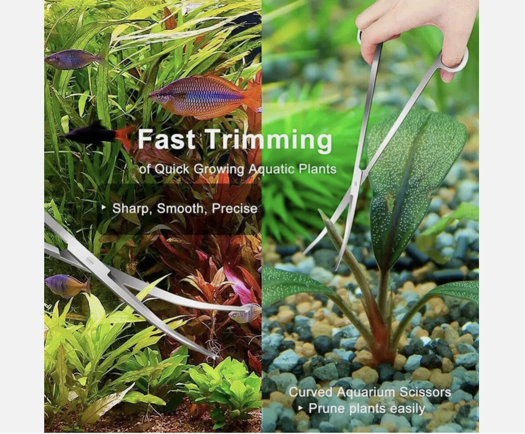 - DELIVERS PRECISE CUTTING & PICKS UP DIRT EASILY --- With their sharp blades, you can use your straight or curved tip scissors for pruning, grooming and trimming your aquatic plants. Toothed Tweezers in this pack can be used in removing dirt from your aquarium’s bottom. Move a décor, rock or gravel carefully by using the shovel to carefully scoop them.