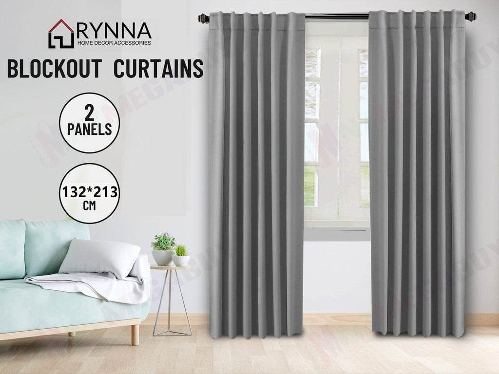 RYNNA 2X Blockout Curtain Blackout Window Curtain Draperies Pair Back Tab Bedroom *Light Grey