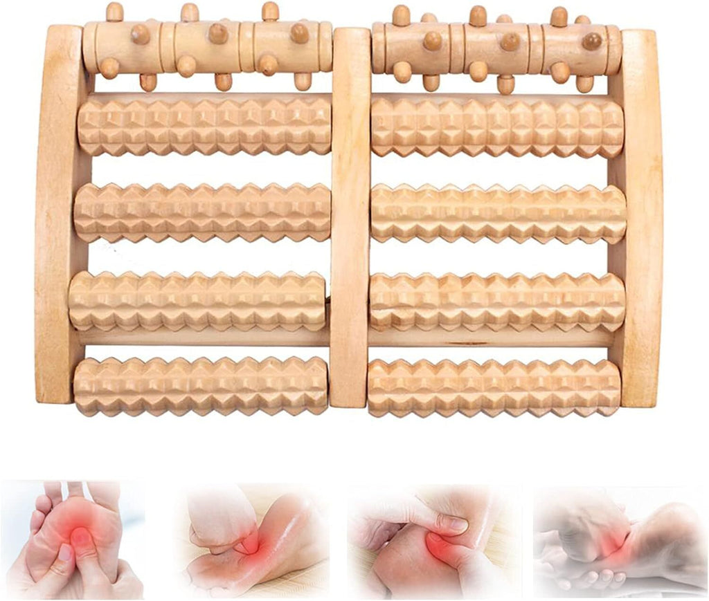 LARGE Wooden Foot Pain Massager 5 Roller Care Reflexology Relax Stress Relief