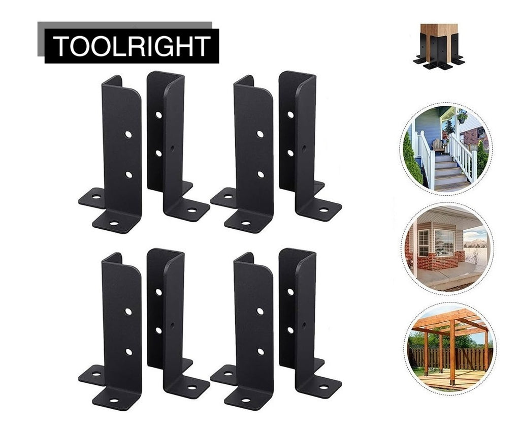8PCS Adjustable Deck Post Base Brackets – Fence, Gazebo, Railing Support (Black)