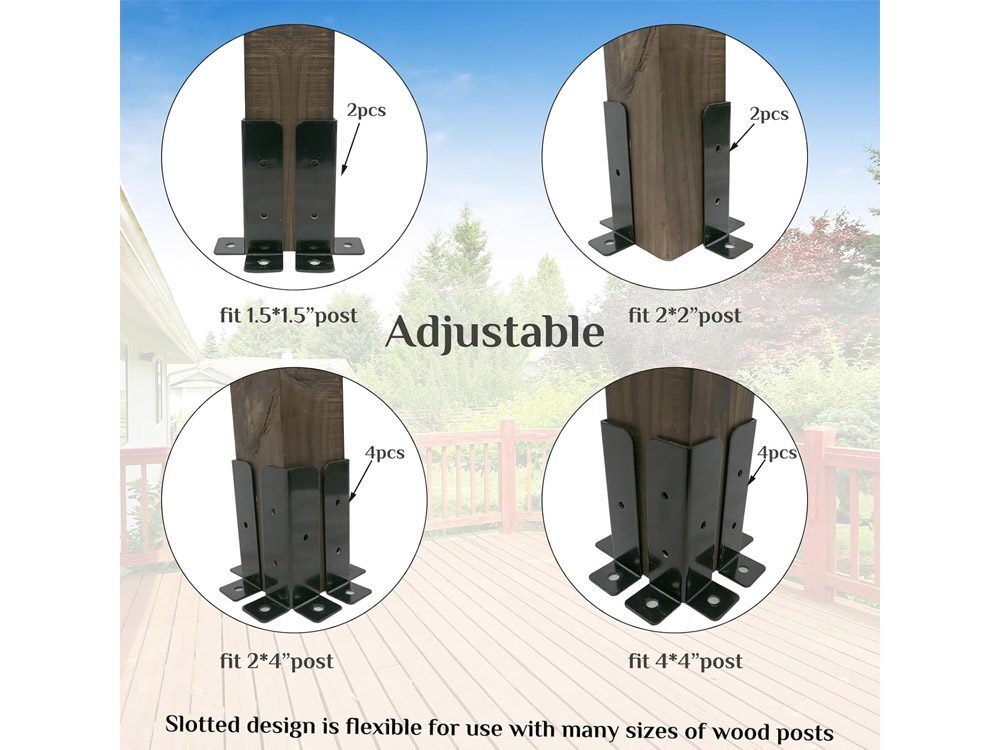 - Adjustable Multi-Size Fit: Compatible with 1.5"×1.5", 2"×2", 2"×4", and 4"×4" timber posts, offering flexible use across different projects.