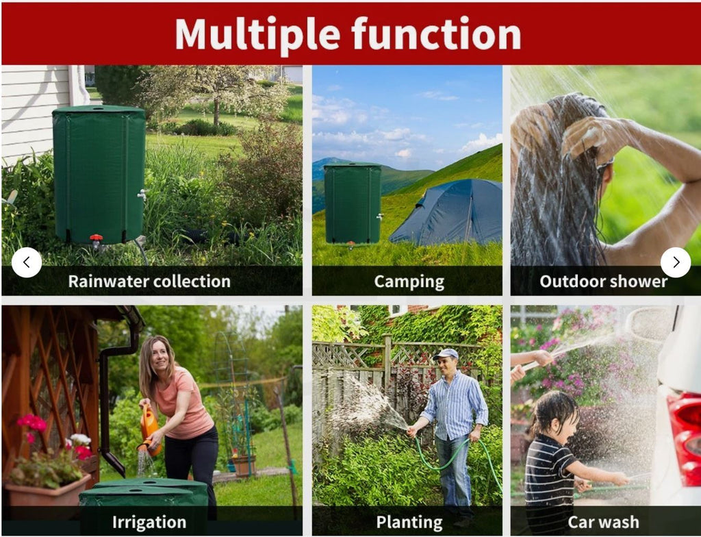This 225L Rain Barrel Water Tank is designed for efficient rainwater collection and storage. With a generous 59-gallon (225L) capacity, it captures water from roofs or gutters for garden irrigation, plant care, outdoor cleaning, or car washing. The top-filtered inlet helps prevent debris from entering, while the upper overflow port safely diverts excess water to avoid spills.