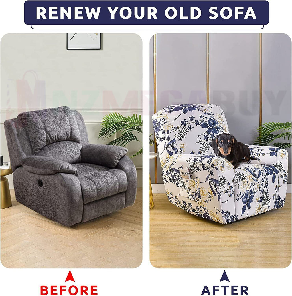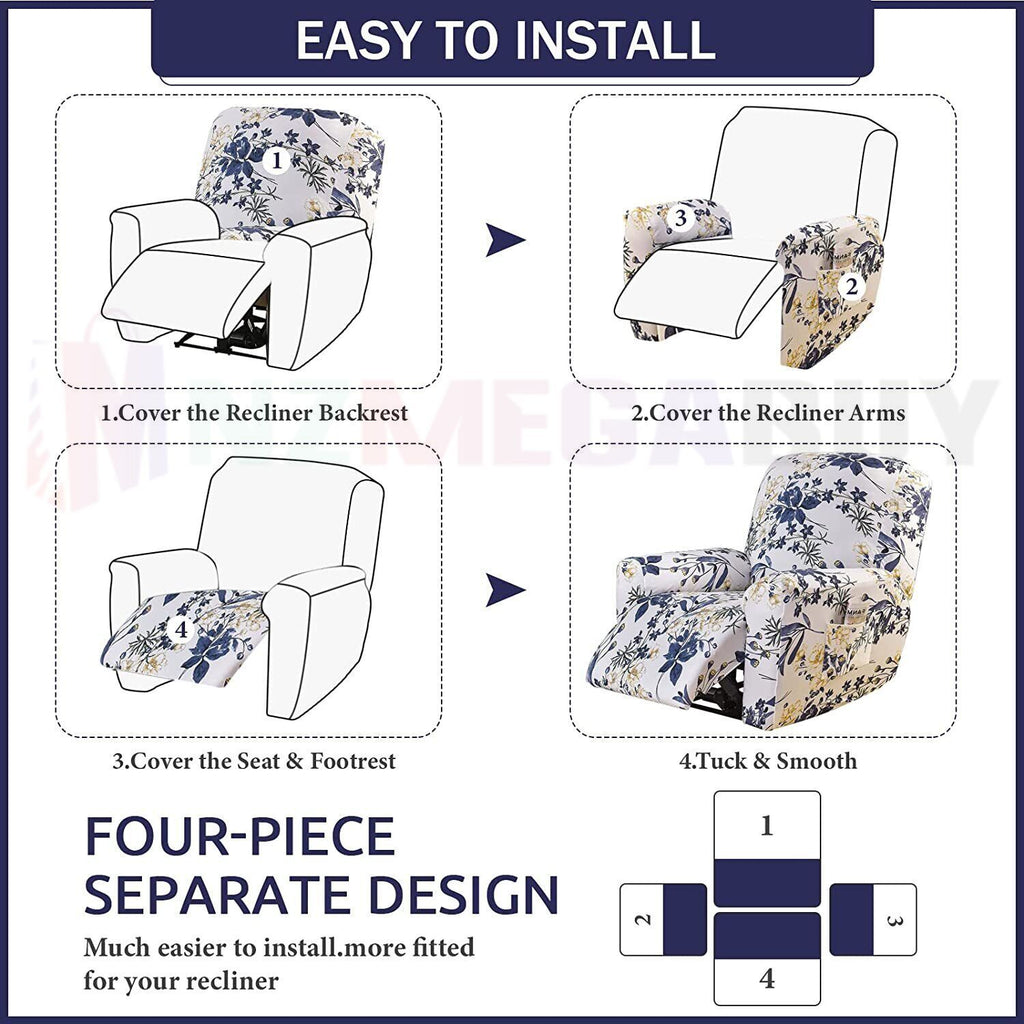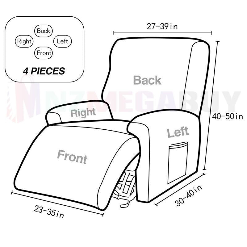 - Great Fit: This innovated 4 Pieces recliner chair couch cover is crafted from luxurious polyester spandex fabric. Suitable for both manual and electric recliners. With pocket and continuous footrest.