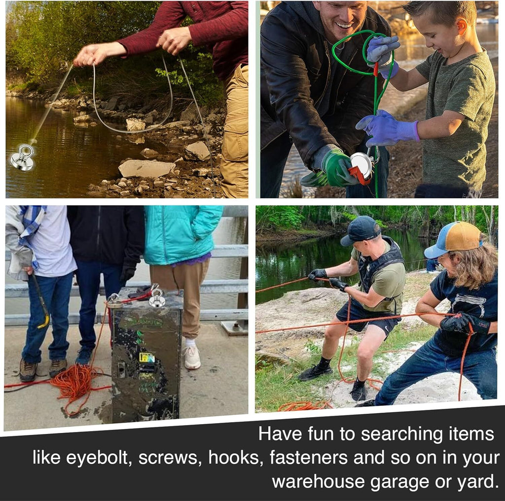 -【Versatile Use】Not only can you use our neodymium retrieving magnet for discovering lost treasures underwater, you can also use our magnet to help suspend everyday items up in the air. Have fun searching items like eyebolt, screws, hooks, fasteners and so on in your river, garage, or yard.