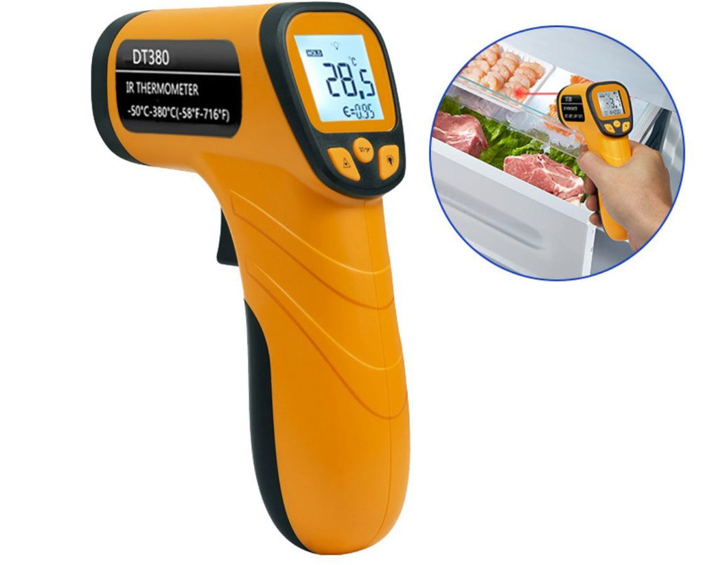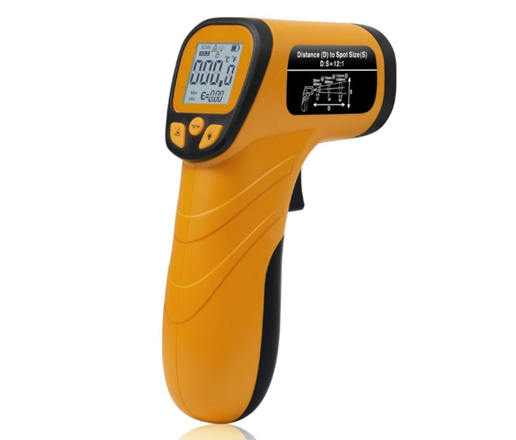 The Infrared Thermometer Laser Temperature Gun is a fast, accurate, and convenient tool for measuring surface temperatures from a safe distance. Featuring a built-in laser pointer for precise targeting, a wide measuring range, and a large backlit LCD display, this non-contact thermometer is perfect for household, automotive, industrial, and kitchen use.