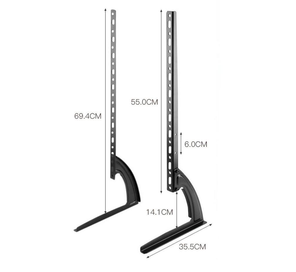Built from 1.5mm thick steel, the stand supports up to 45kg. Its wide base ensures excellent balance on tables, cabinets, or entertainment units. The non-slip rubber feet prevent scratches and add extra grip for safety.