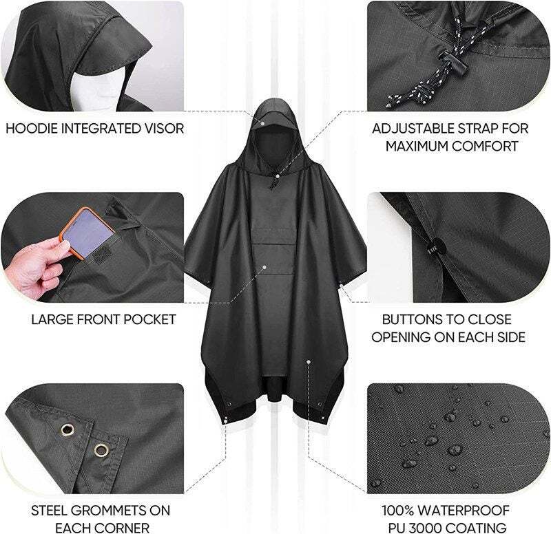 Multi-Functional Design: Equipped with hem eyelets, this poncho can also be unfolded into a tarp, floor mat, or emergency shelter. It can even serve as a sleeping bag cover in the outdoors.