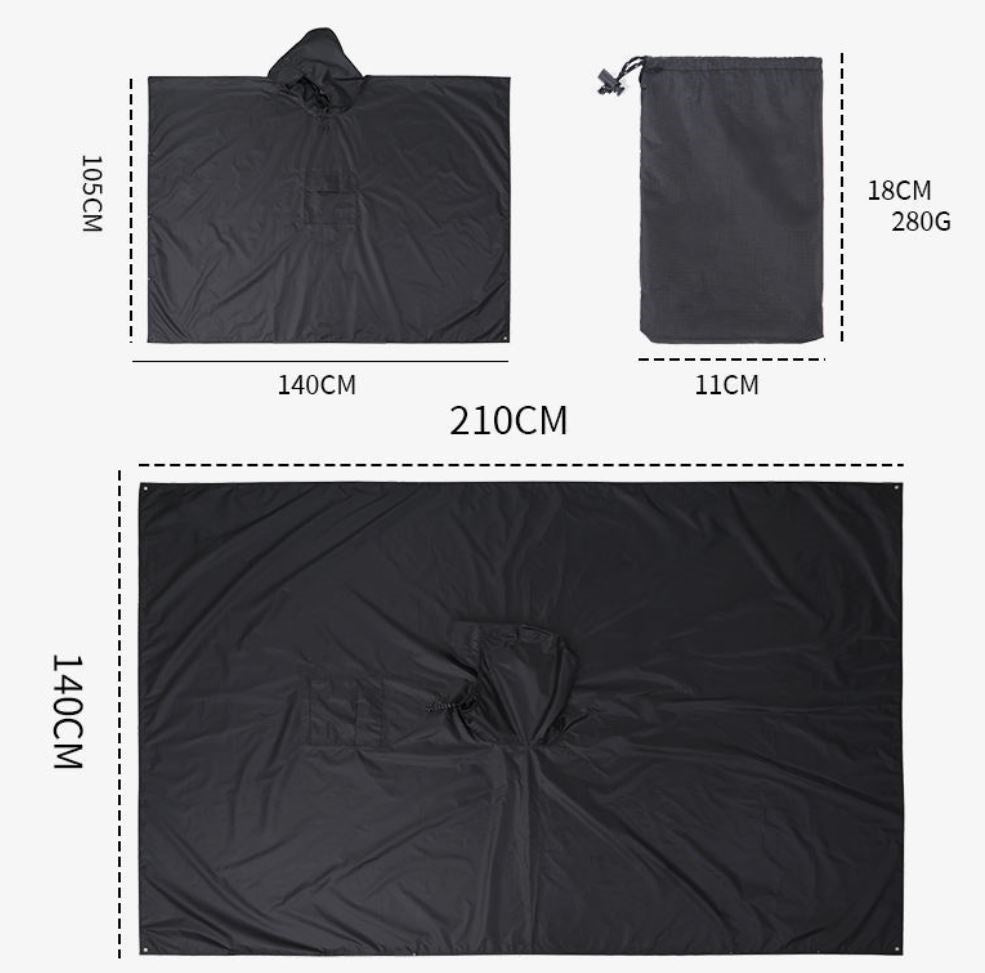 Lightweight & Extended Coverage: Weighs only 0.3kg and measures 212 × 142 cm, offering full-body coverage. Large enough to cover your backpack and keep your gear dry.