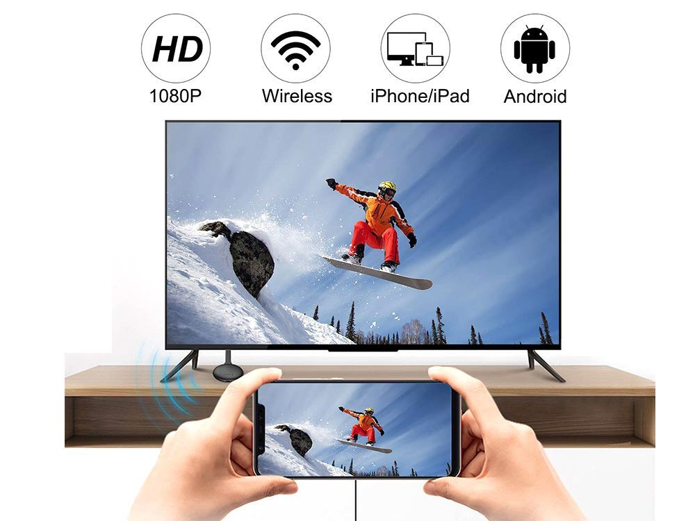 Wireless Display: Built-in 2.4 GHz WiFi module ensures stable AV mirroring. Without WiFi, only downloaded content can be mirrored.