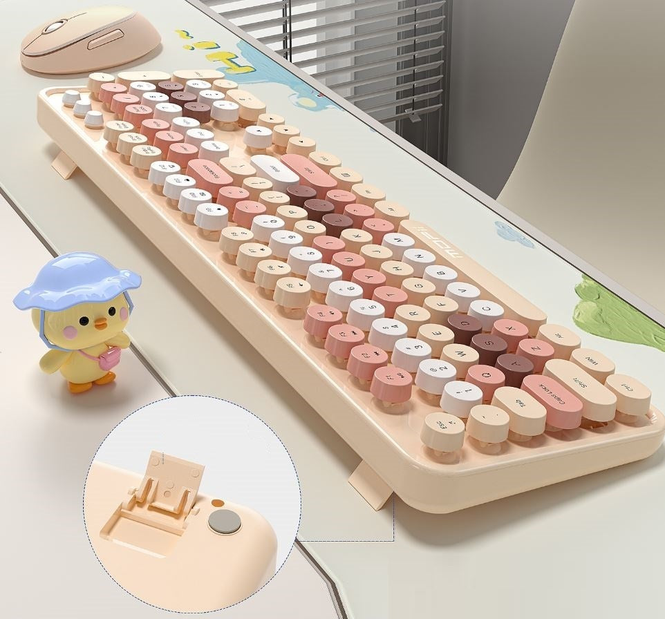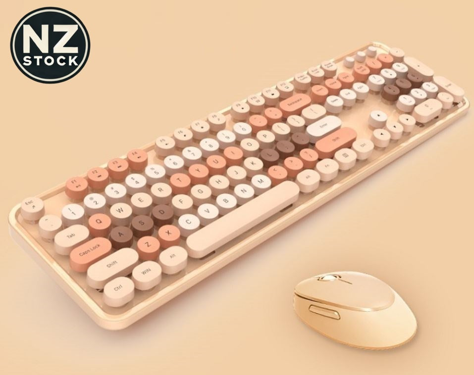 Bring style and performance together with this 104-Key Wireless Mechanical Keyboard & Mouse Set, designed with the charm of a classic retro typewriter.